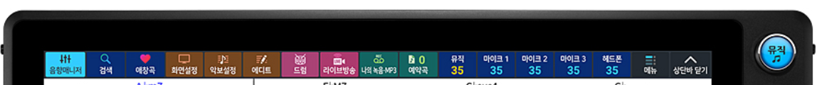 화면상단에 표출되는 "음향메니져" "검색" "애창곡"