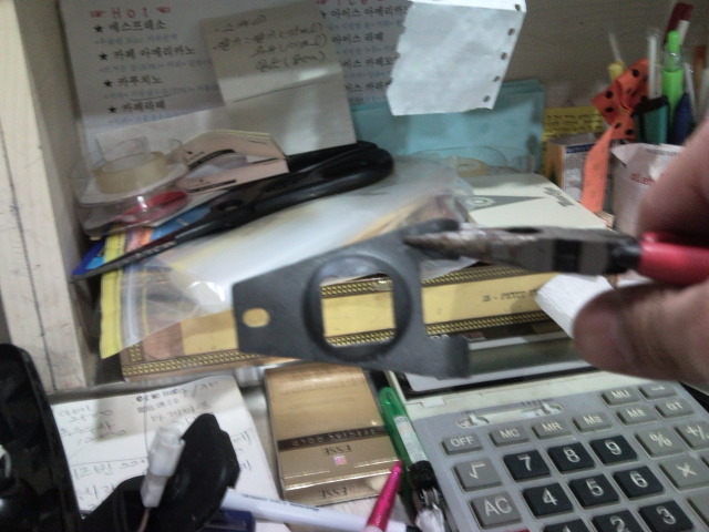 다음사진 같이 플라이어를 이용해서볼록한부분쪽으로 각 모서리를 구부려줘봤습니다.