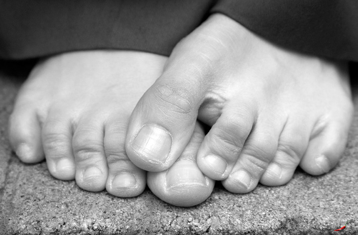 펄과 물속에 오래 담겨 있어 부르튼 맨발