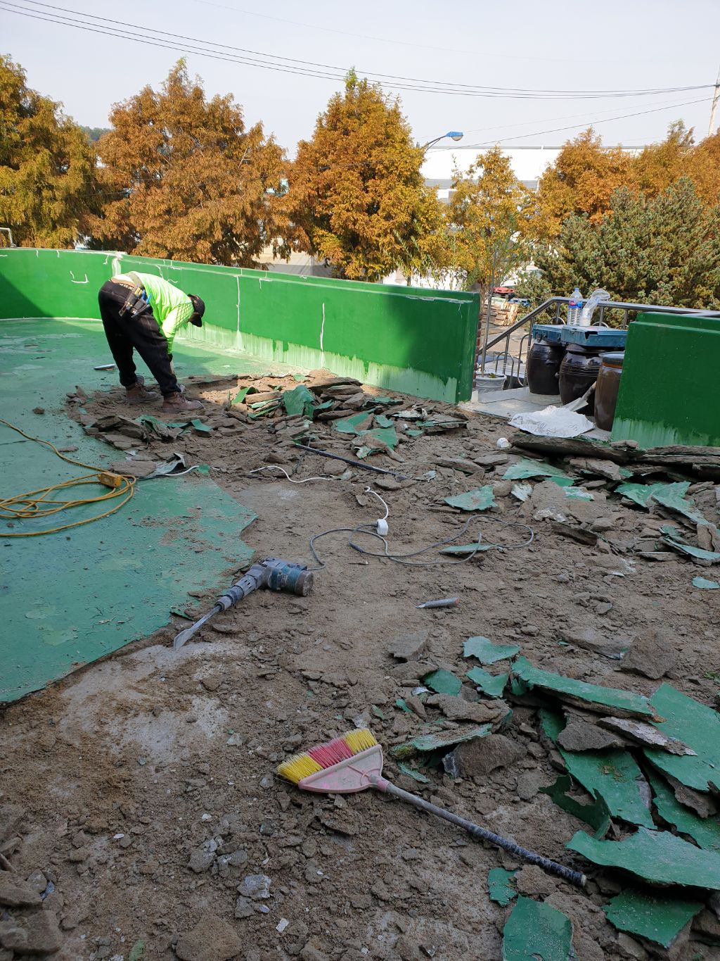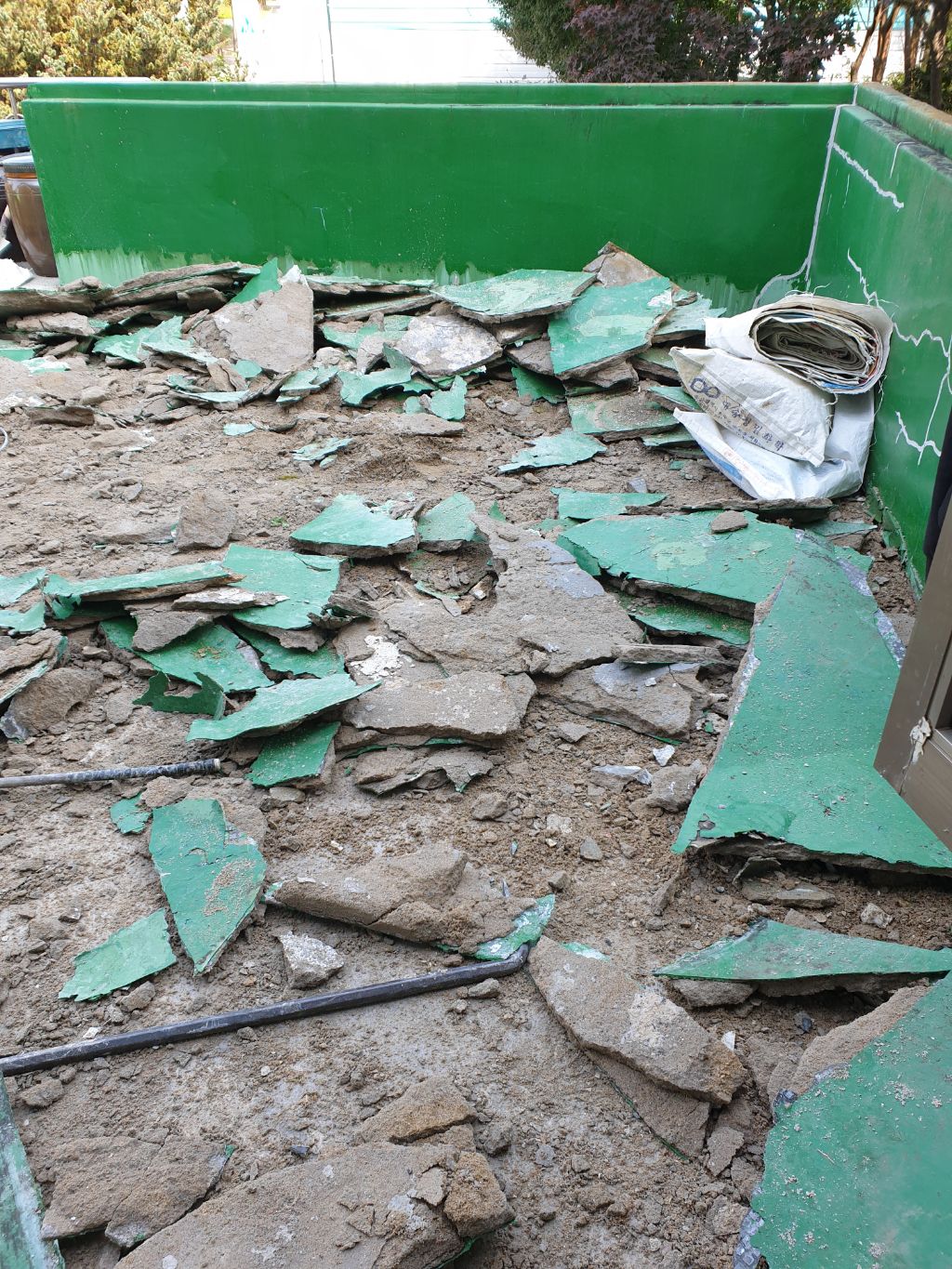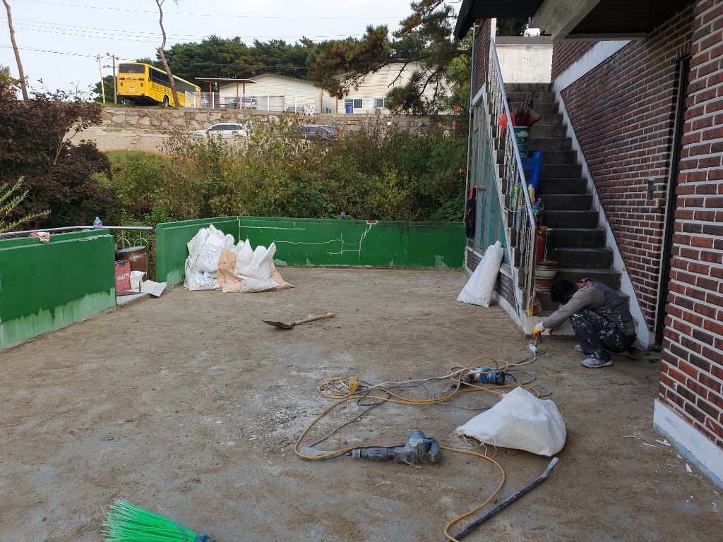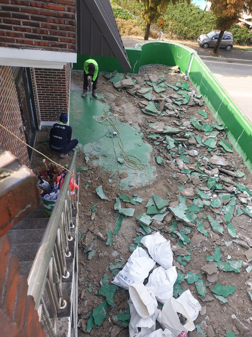2층 사택 현관 앞이 너무 심각해서 바닥을 들어내는 작업을 하다보니 공사가 커질듯 합니다.