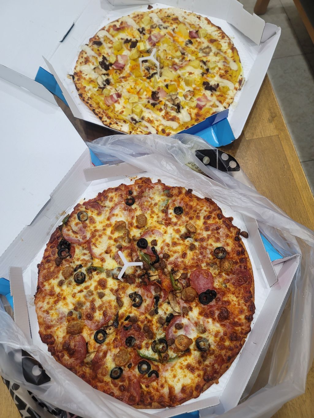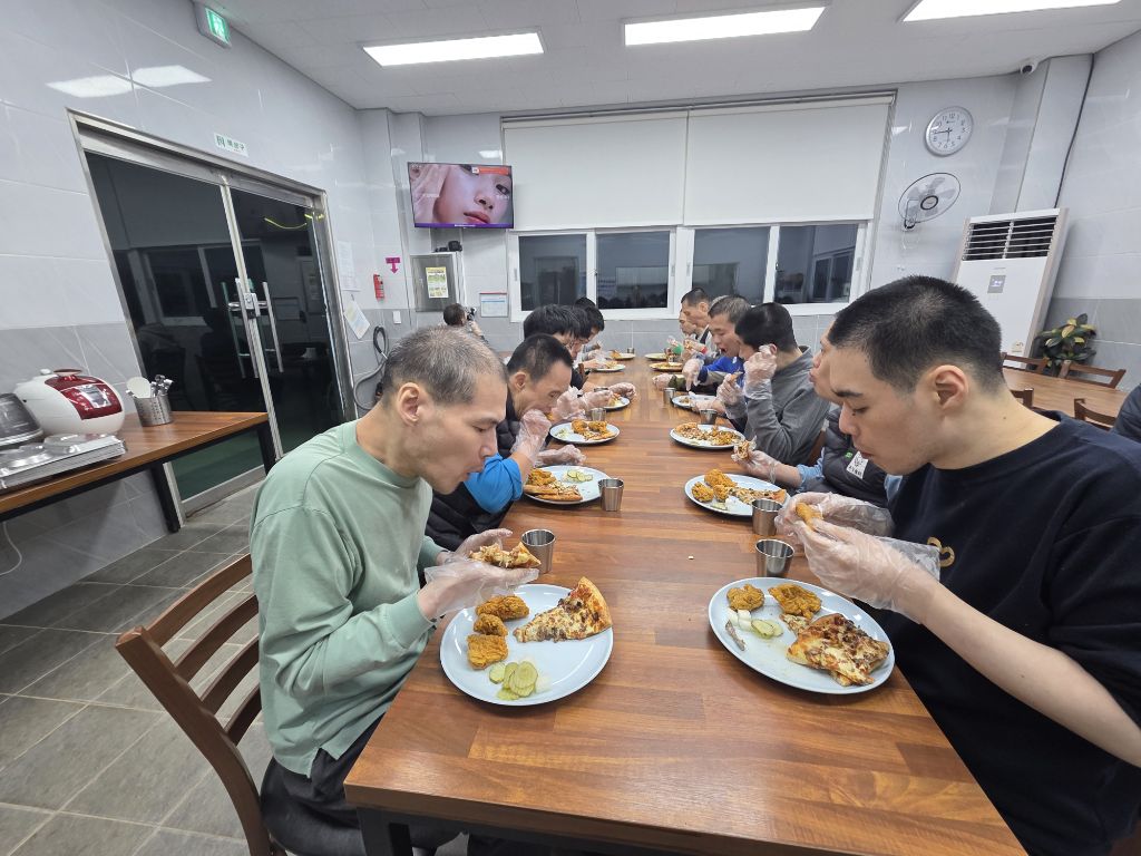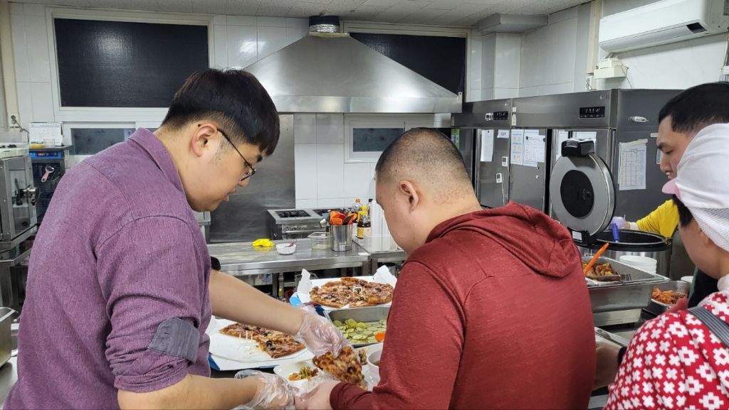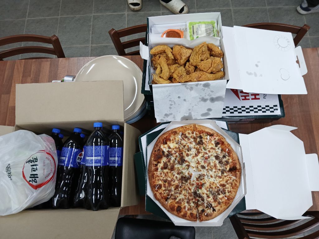 자오쉼터에도 피자와 치킨으로 섬겼습니다.
