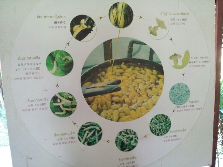 실크팜은 누에, 실뽑는 과정, 염색하는 과정, 옷을 짜는 과정을 볼수 있는 곳입니다.