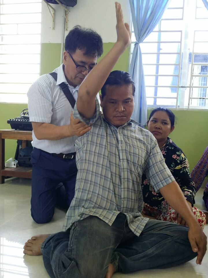 3개월 전 오토바이 사고로 오른손이 올라가지 않았는데 몸성도가 심방을 원해서 갔습니다.