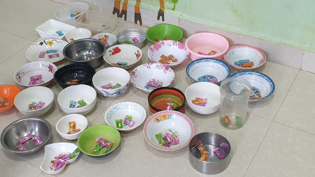 2주 전에 아이들에게 병이나 그릇을 가져오라고 했습니다.