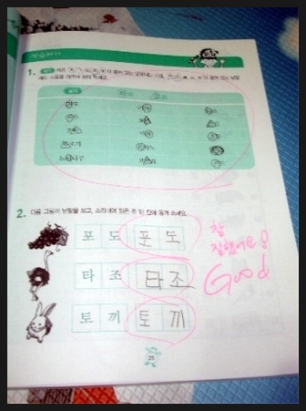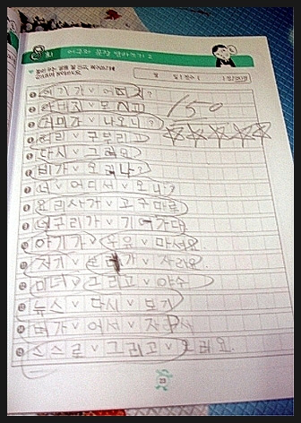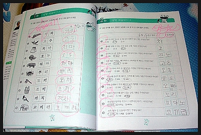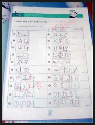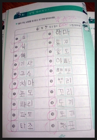 어려운 자음들이고 자주 틀리는 단어와 문장이 있어서 좀 힘들어했네요.