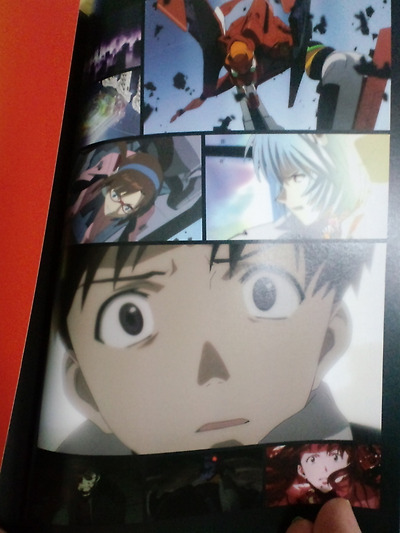 팜플렛은 변태스럽게도 스티커로 밀봉되있었다. 아마 영상을 보기전에 내용까발리는걸 방지하기 위함일지도 모르지만 친구와 나는 팜플렛을 2권사게 하려는 가이낙스의 음모가 분명하리라고 장담하고 거기에 기꺼이 응해주어 본인도 2천엔을 ATM에서 뽑아서 2권샀다. -_-;