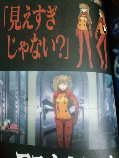 이때 아스카가 입는 플러그슈트는 테스트용. 빨간색인건 좋지만 너무 속이 들어나는게 아니냐며 창피해한다.