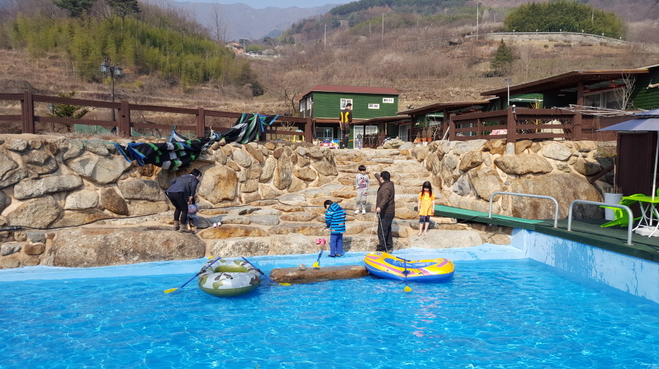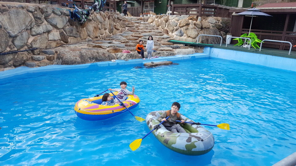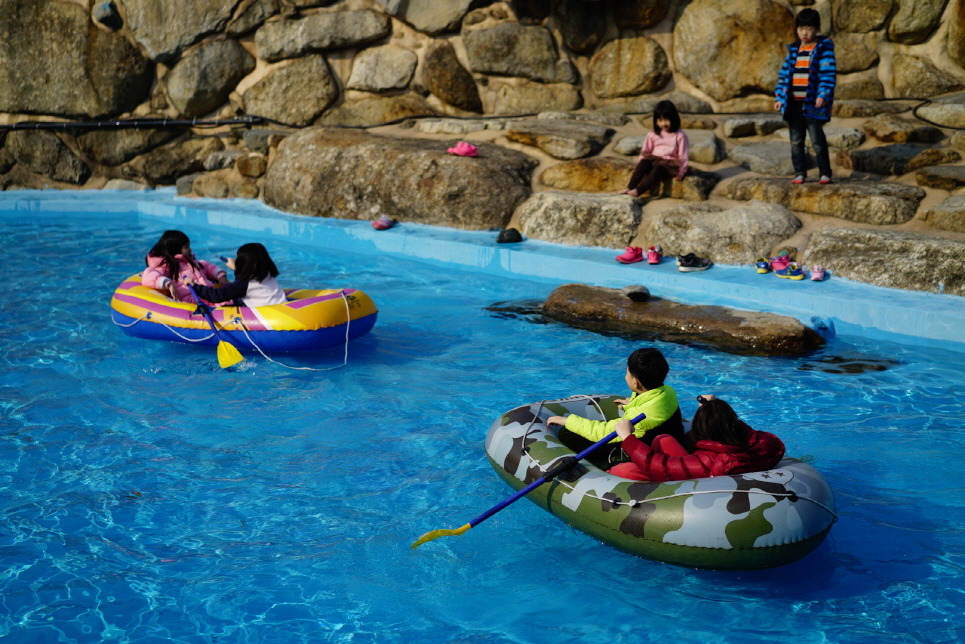 아직 수영장시즌 오픈 전이지만 하동산수애는 4계절 아이들을 위해 보트놀이를 할 수 있게 합니다.