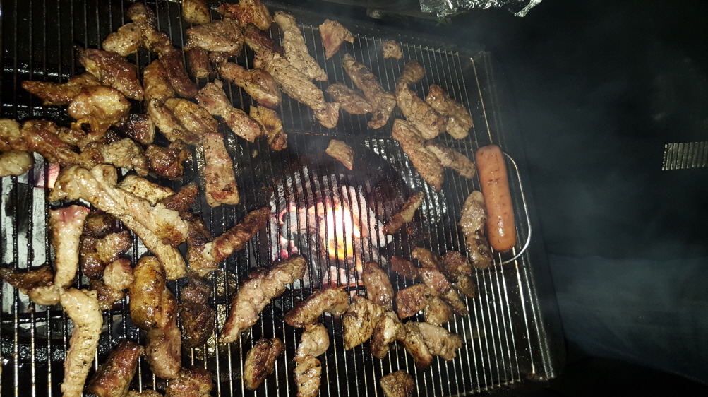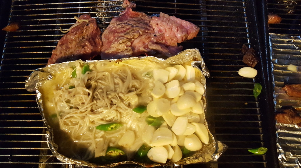 고기를 스테이크용 처럼 아주 두껍게 잘 장만해 와 고기맛이 숯불에 최고라네요.