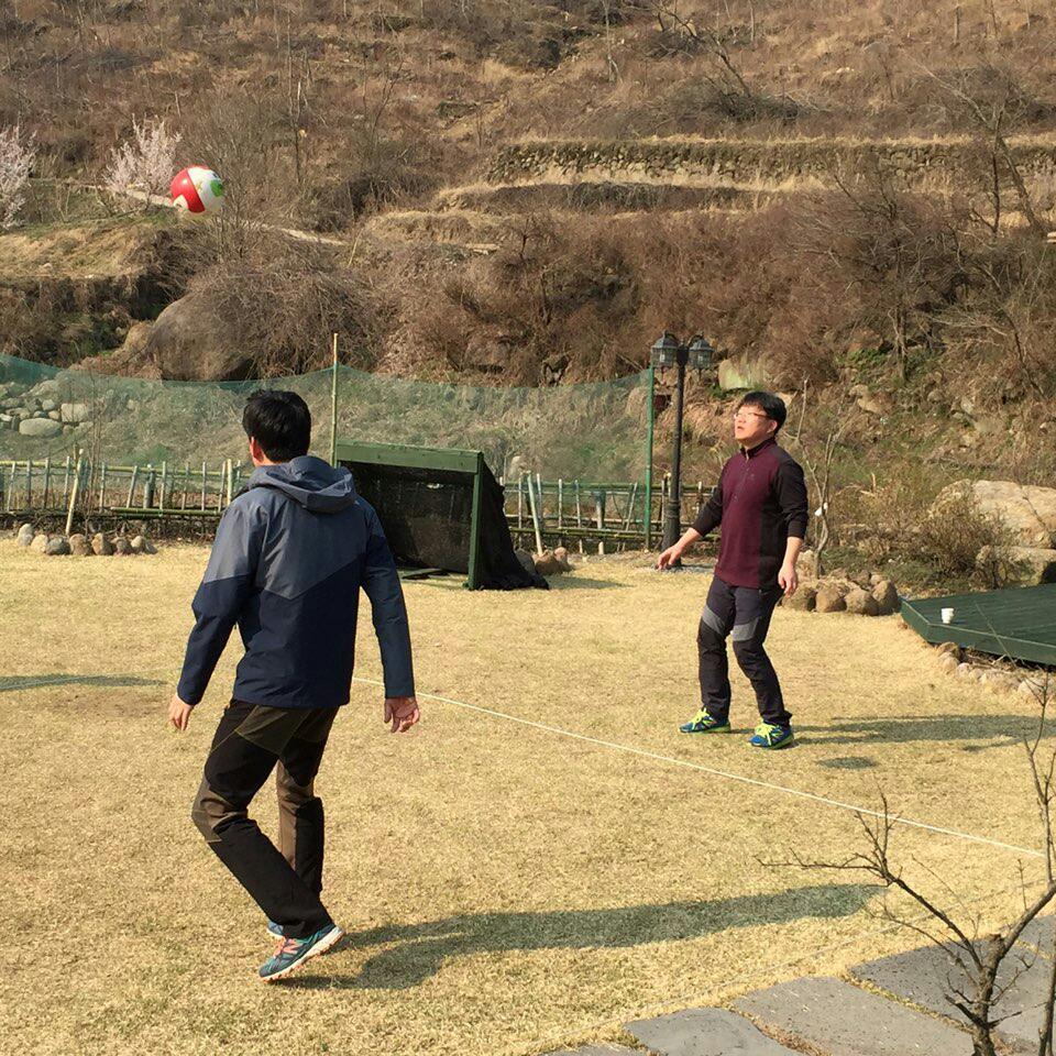 어른들은 하동산수애 넓은 잔디마당에서 족구한판이 벌어졌습니다.