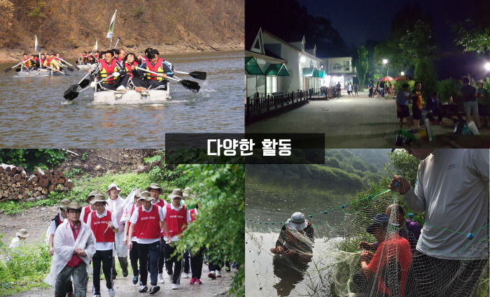 래프팅, 바비큐, 등산, 족구, 낚시, 캠프파이어 등 다양한 활동이 가능합니다.