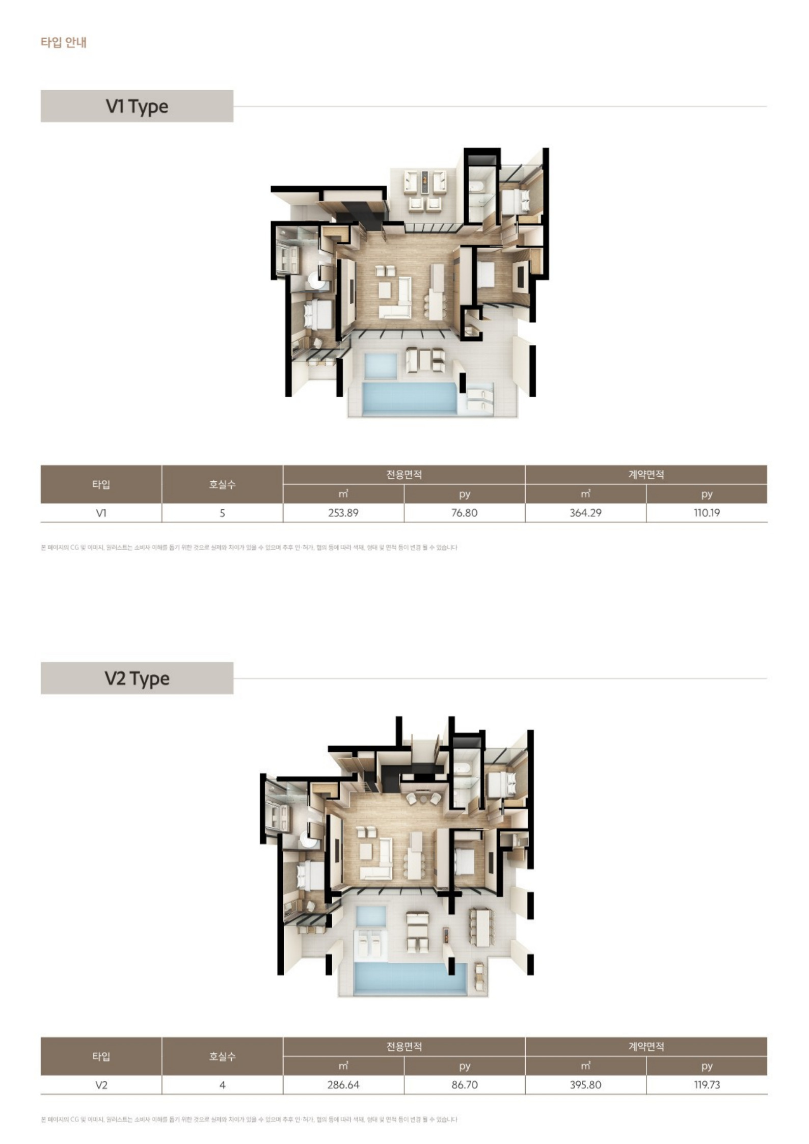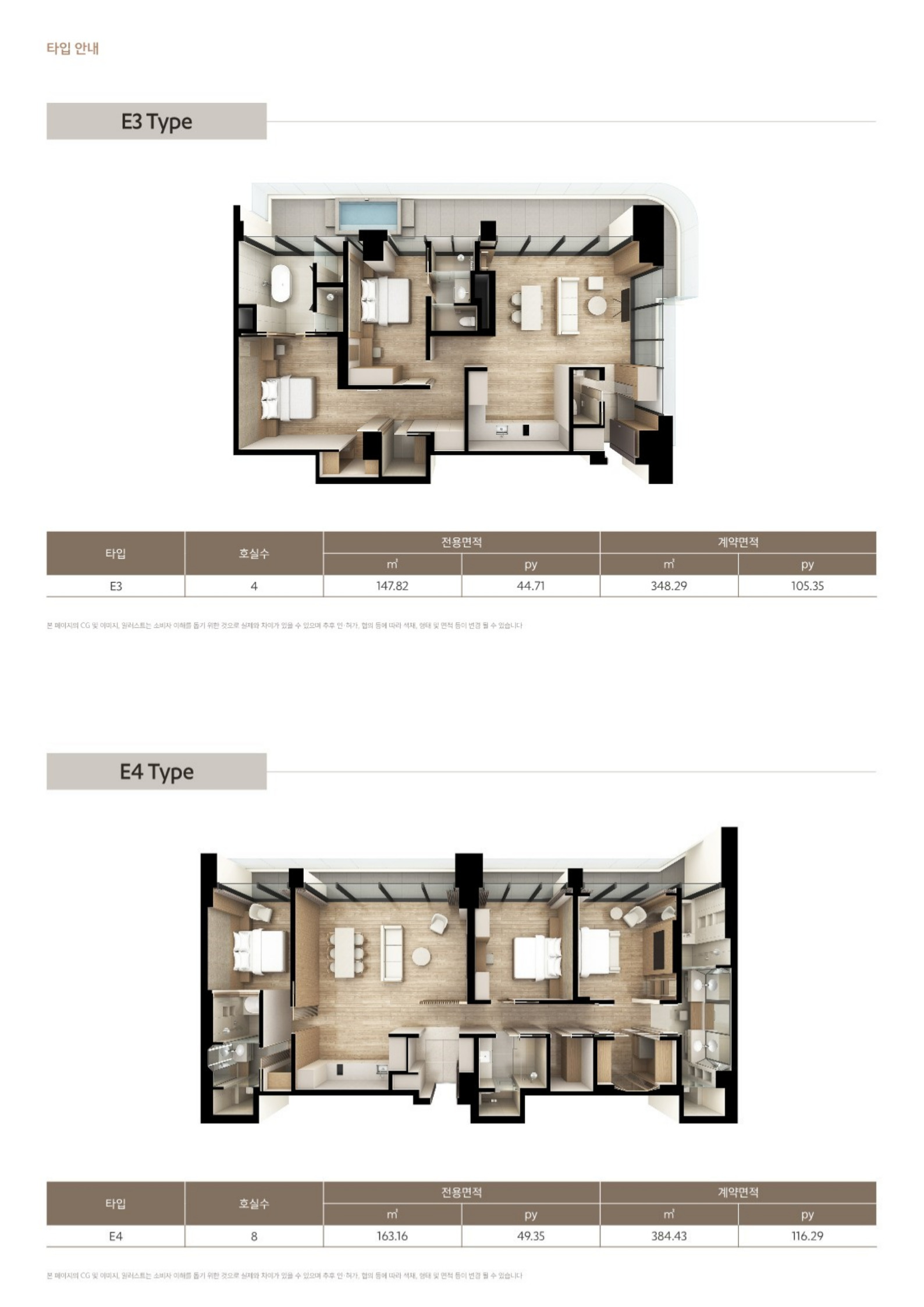 ✔ 3룸 4가지 타입 D1, E4,풀빌라