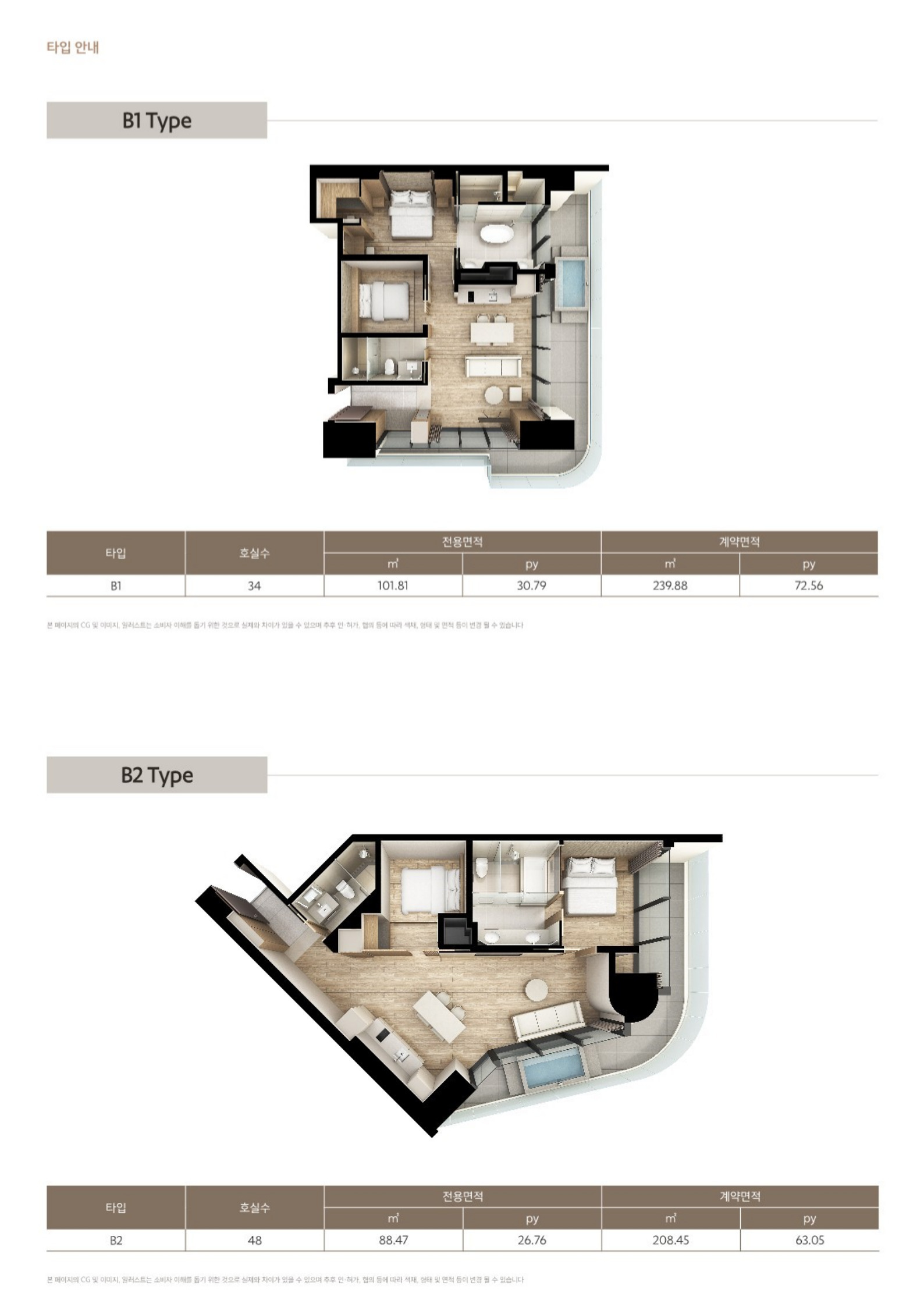 ✔ 2룸 10가지 타입 B~E3 디럭스룸