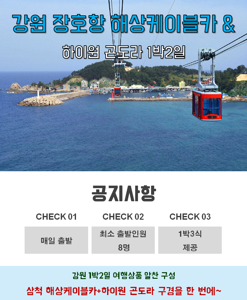 26번 :[1박2일]강원 장호항 해상케이블카&하이원곤도라 작성자동대구역투어매니저|작성시간17.12.07|조회수1,252 목록 댓글 0 글자크기 작게가 글자크기 크게가 다음검색 현재 게시글 추가 기능 열기 북마크 공유하기 신고 센터로 신고 댓글 댓글 0 댓글쓰기 답글쓰기 댓글 리스트