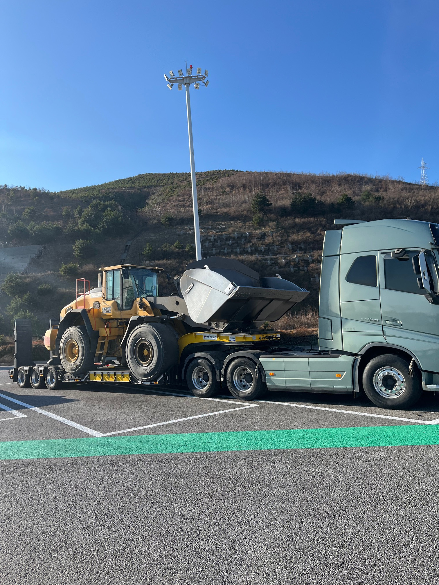 휠로더가 중량보다는 높이 때문에 신경 쓰이는데 멎진 장비를