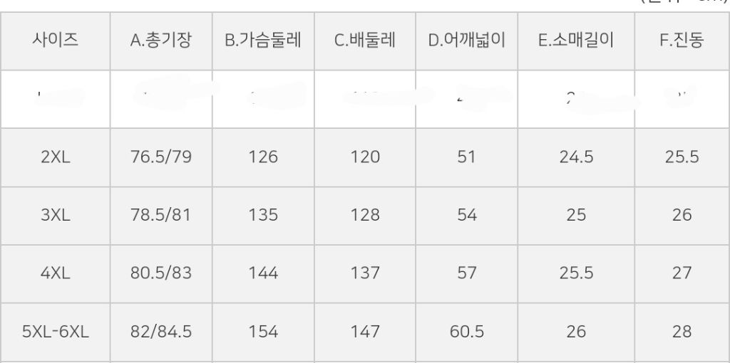 가슴둘레 120 이상만빅사이즈 주문해주세요