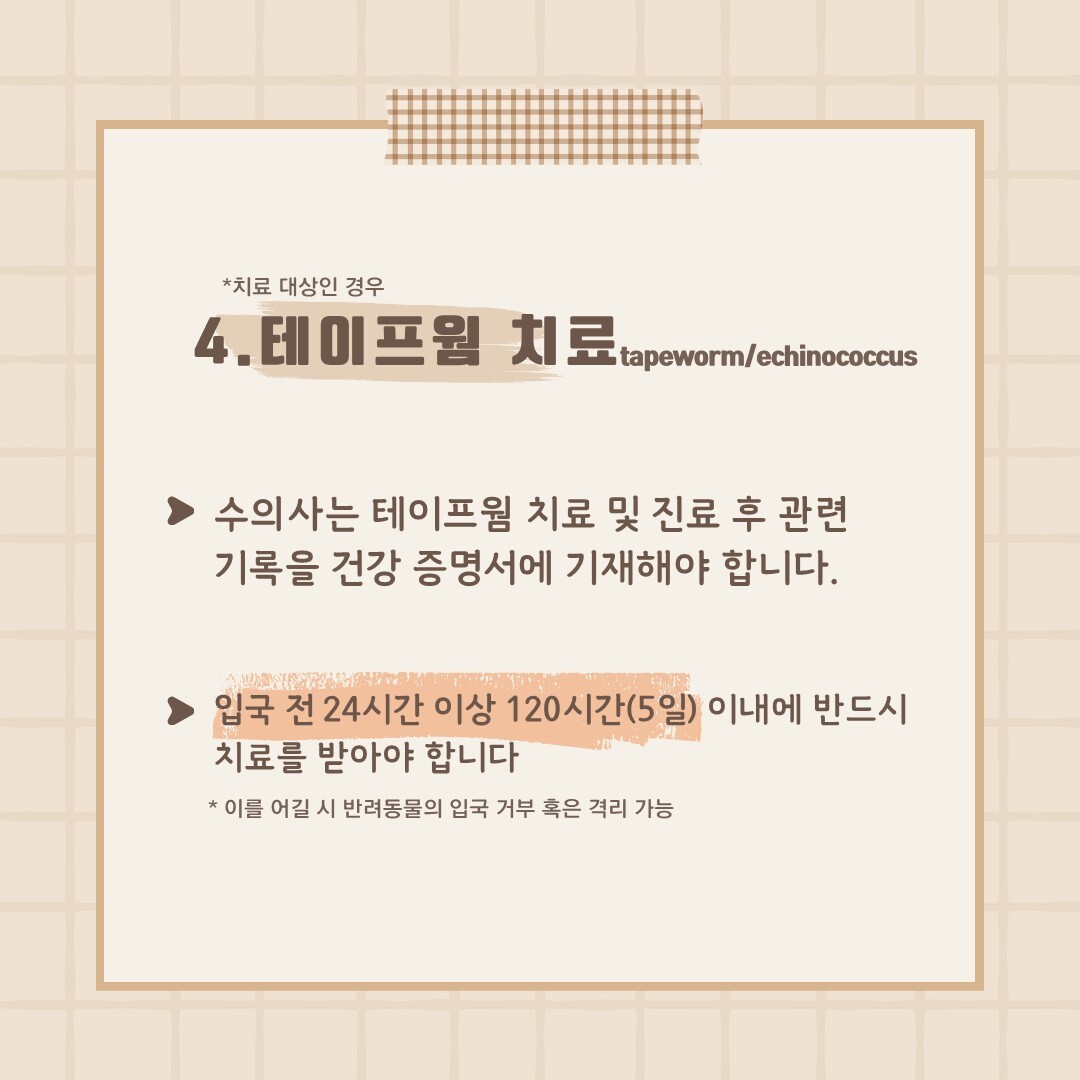 자세한 정보는 영국 정부 홈페이지(https://www.gov.uk/taking-your-pet-abroad) 및 우리나라 농림축산검역본부 홈페이지(https://www.qia.go.kr)를 통해 확인 바랍니다.