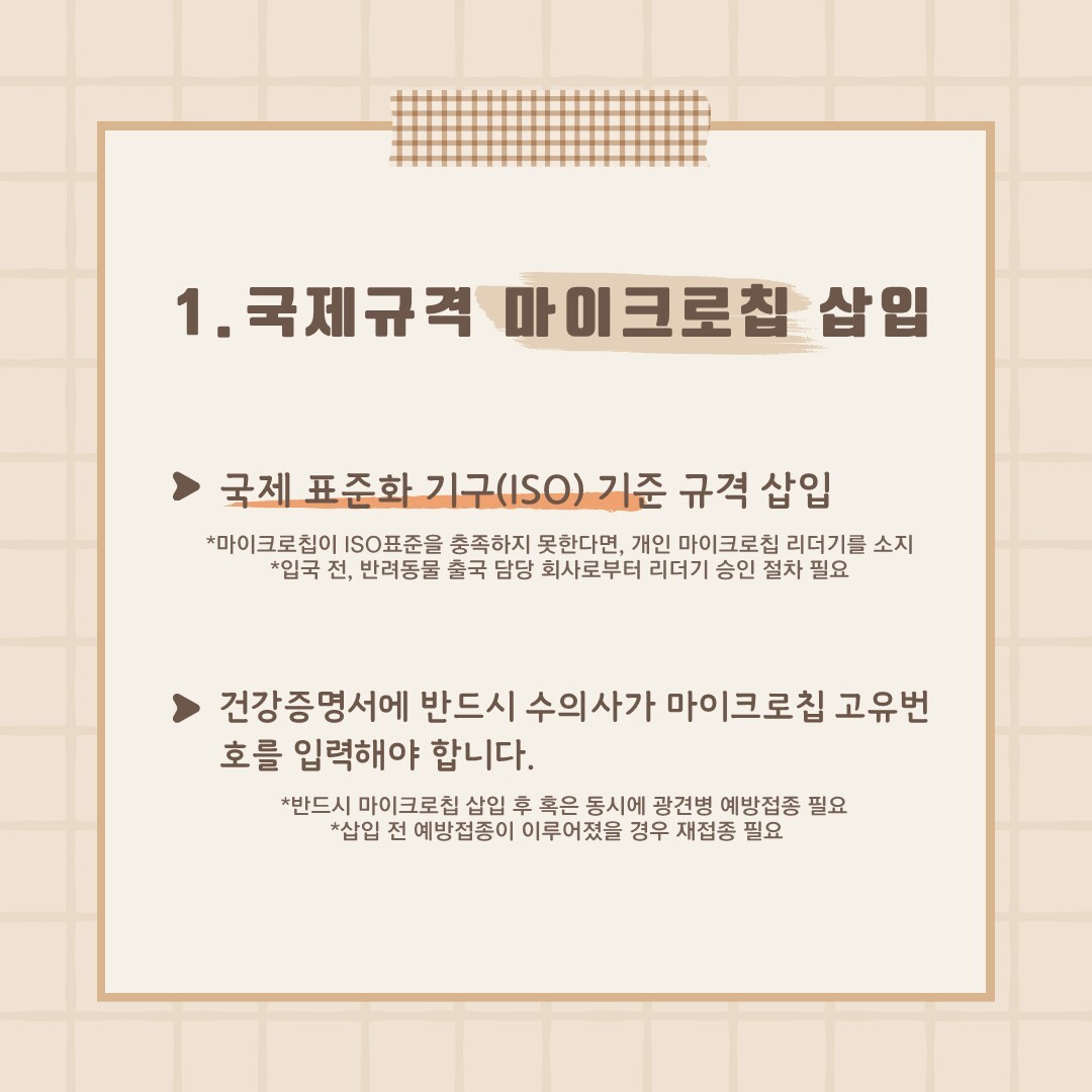 1. 광견병 접종 및 마이크로칩 국제규격 삽입