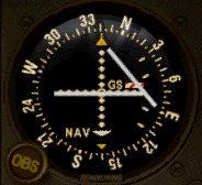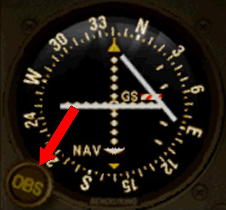 위 그림을 보시면 화살표로 표시된게 OBS 코스(위에서 말한 하늘 고속도로)를 결정하는 것입니다. 저 다이얼을 돌리면 주위 방위계 비슷하게 생긴것이 막 돌아가는데, 위쪽을 향하는 노란 화살표(이하 노란 화살표)가 가리키는게 선택한 코스가 되는것입니다.