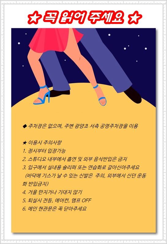 ♥댄스화는 필참입니다! 절대 외부에서 신는 신발 신고 들어올수 없습니다.