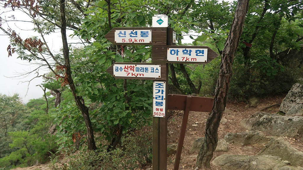 4.산행코스: 별가람펜션-궁뎅이바위-조가리봉-미인봉(저승봉)-손바닥바위-킹콩바위-학봉-신선봉-단백봉-용바위봉-갑오고개
