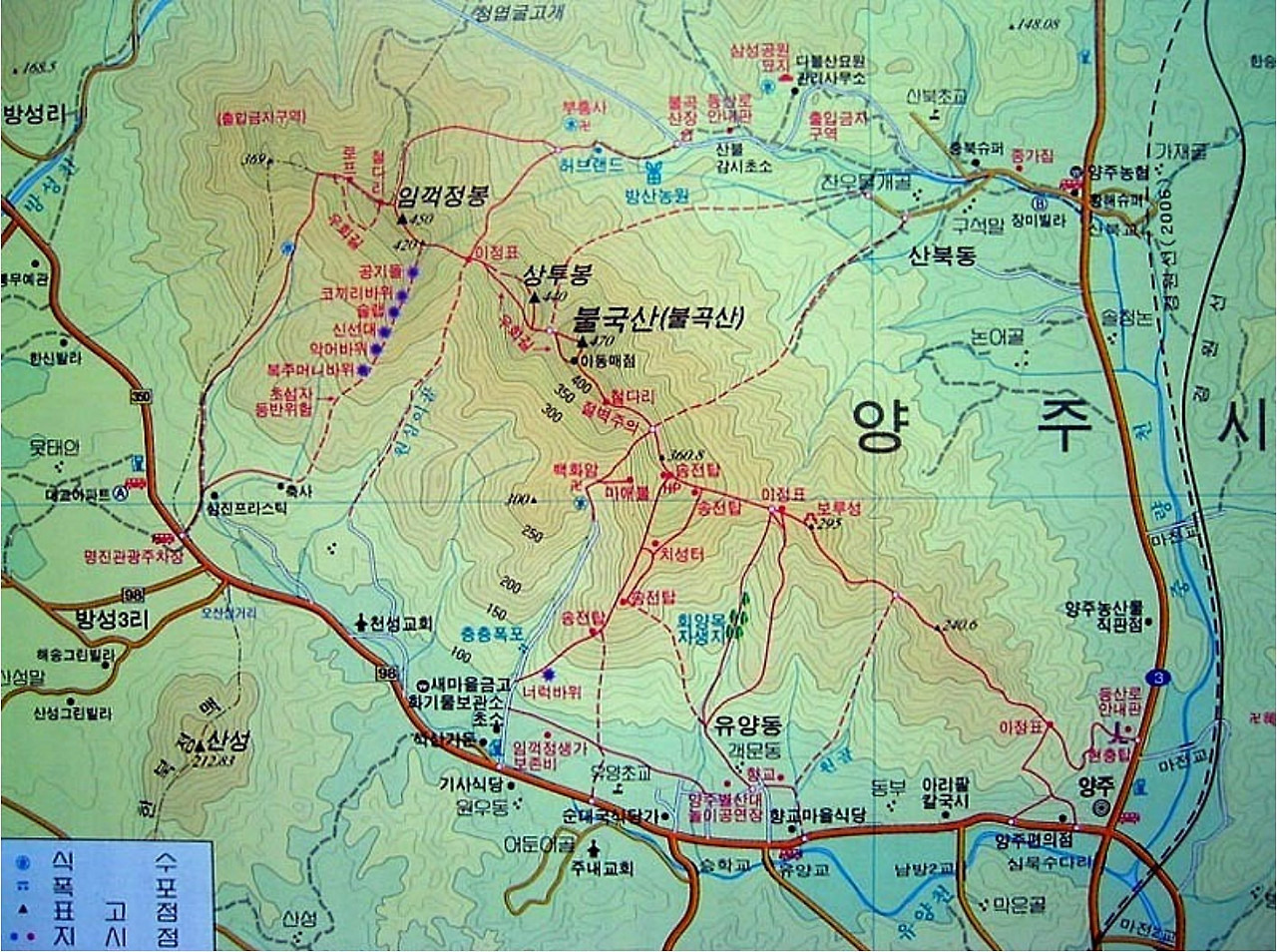 4.산행코스: 양주시청-불곡산(상봉)[470.7m]-상투봉[431.8m]-420봉-임꺽정봉[449.5m]-420봉-신선대능선-대교아파트