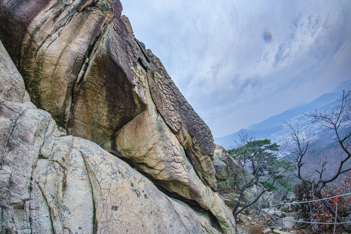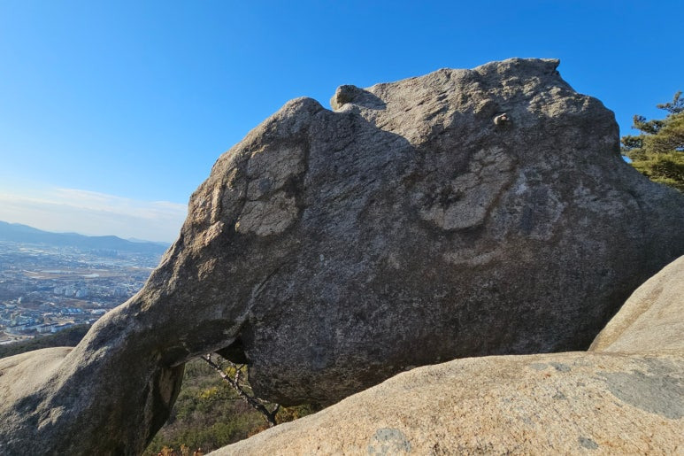 장관이다. 불곡산 정상부근의 암벽은 평범 속의 비범함을 드러내고 있는 듯 하며, 보는 시각에 따라 묘미가 다른