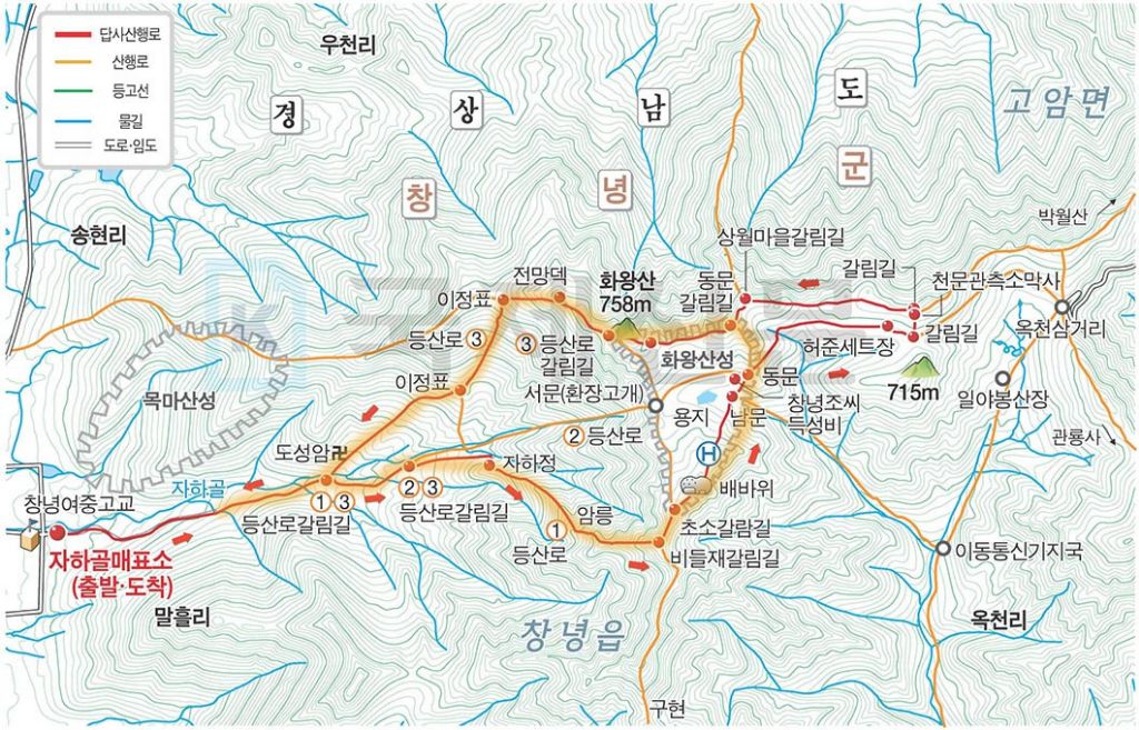 | ◈코스 | 도성암(자하곡매표소)~1코스 배바위~ 화왕산 정상~3코스 도성암 |