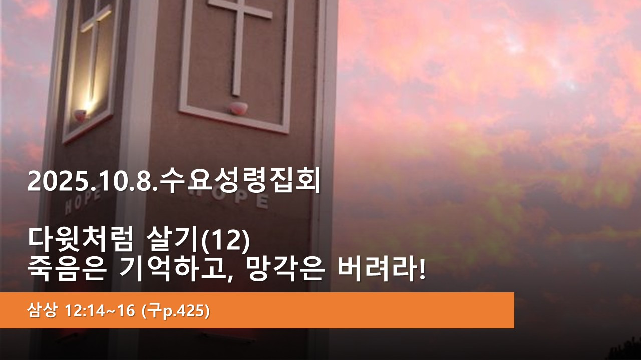 *제목; 다윗처럼 살기(12) 죽음은 기억하고, 망각은 버려라!