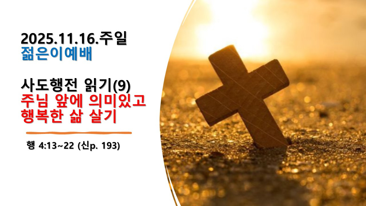 2025.11.16.주일 젊은이예배(행 4:13~22, 사도행전 읽기(9) 주님 앞에 의미 있고 행복한 삶 살기)