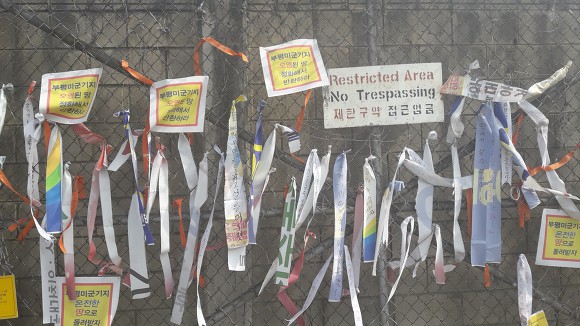 미군부대 제1정문에 붙어있는 부평시민들의 호소문