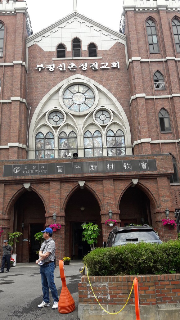 신촌 중앙로 부평신촌 성결교회앞에서 인증샷