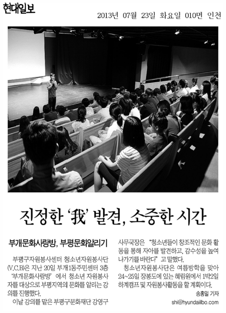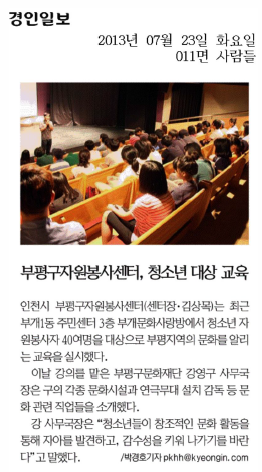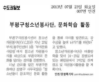 청소년봉사단(V.C.B), 부개문화사랑방 방문 작성자구주라(부평구자원봉사센터)|작성시간13.07.23|조회수50 목록 댓글 0 글자크기 작게가 글자크기 크게가 다음검색 현재 게시글 추가 기능 열기 북마크 공유하기 신고 센터로 신고 댓글 댓글 0 댓글쓰기 댓글 리스트