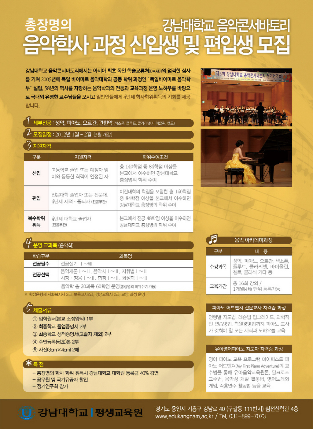 [스크랩] 2012년 강남대콘서바토리 신.편입생모집 작성자피리소년2|작성시간12.01.14|조회수14 목록 댓글 0 글자크기 작게가 글자크기 크게가 다음검색 스크랩 원문 : 강남대학교 콘서바토리 음악학과 현재 게시글 추가 기능 열기 북마크 공유하기 신고 센터로 신고 댓글 댓글 0 댓글쓰기 답글쓰기 댓글 리스트