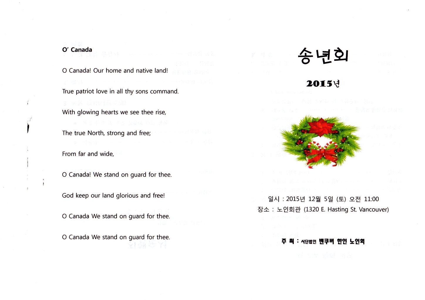 2. 장소: 노인회관(1320 E. Hastings Street Vancouver)