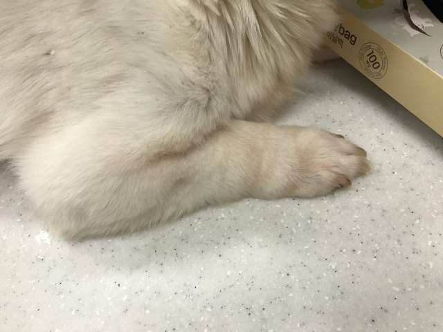 * 오른쪽 앞발 뒷발은 퉁퉁 부어있어요..