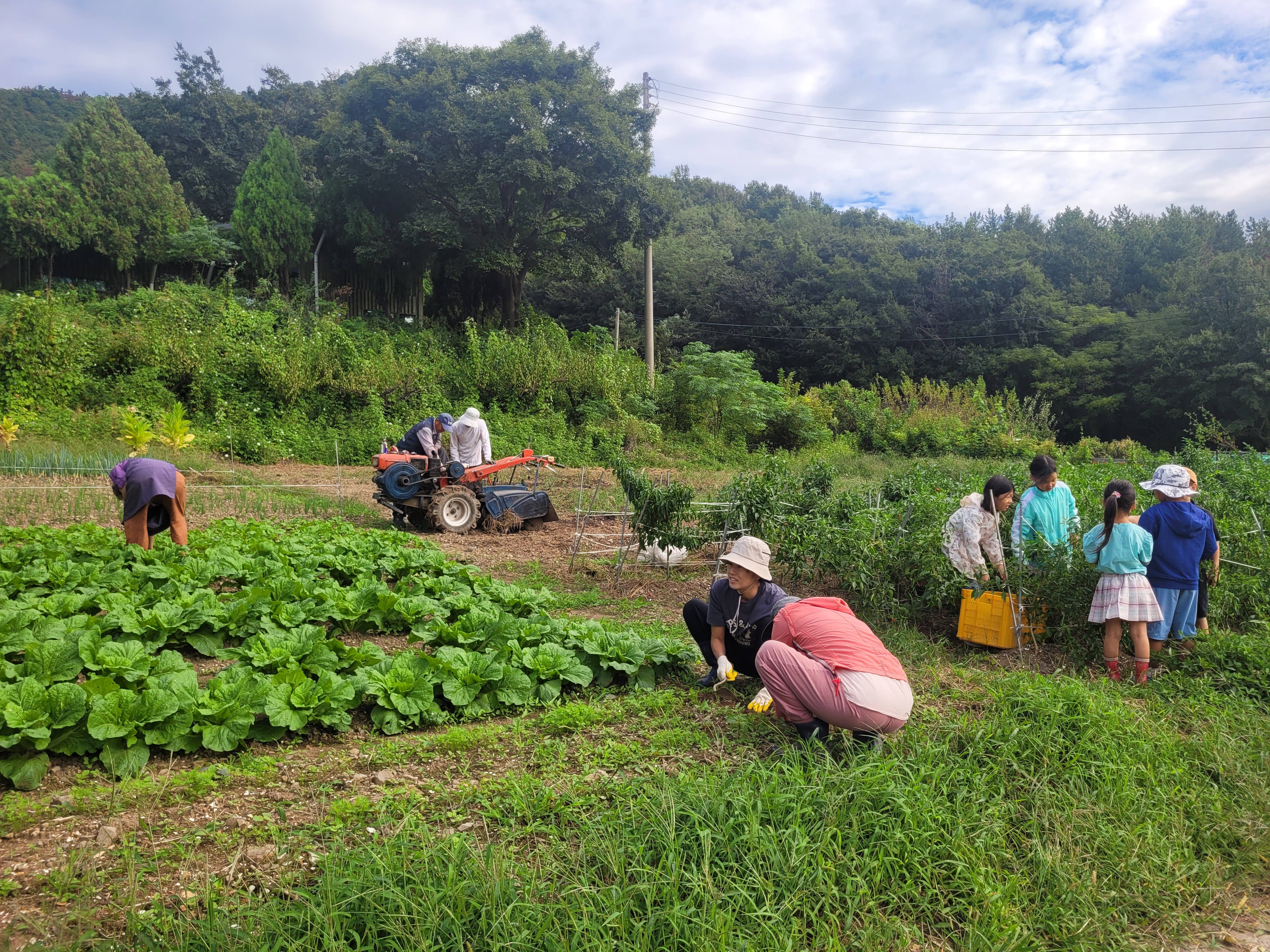 오늘 할 일은 무를 솎고 당근밭에 풀을 뽑고(당근이 아직 가녀려 조심조심) 솎아주고, 배추밭, 무밭에 풀 매고, 다음 주에 심을 마늘 밭을 경운합니다.
