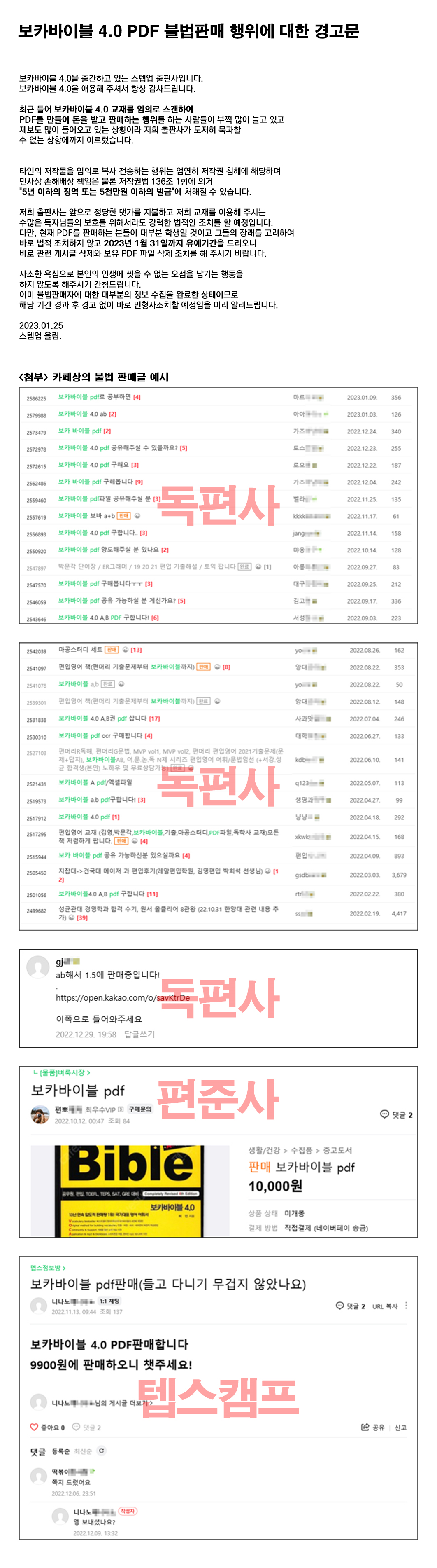 최근들어 인터넷 카페 등에 보카바이블 4.0을 불법으로 스캔해서