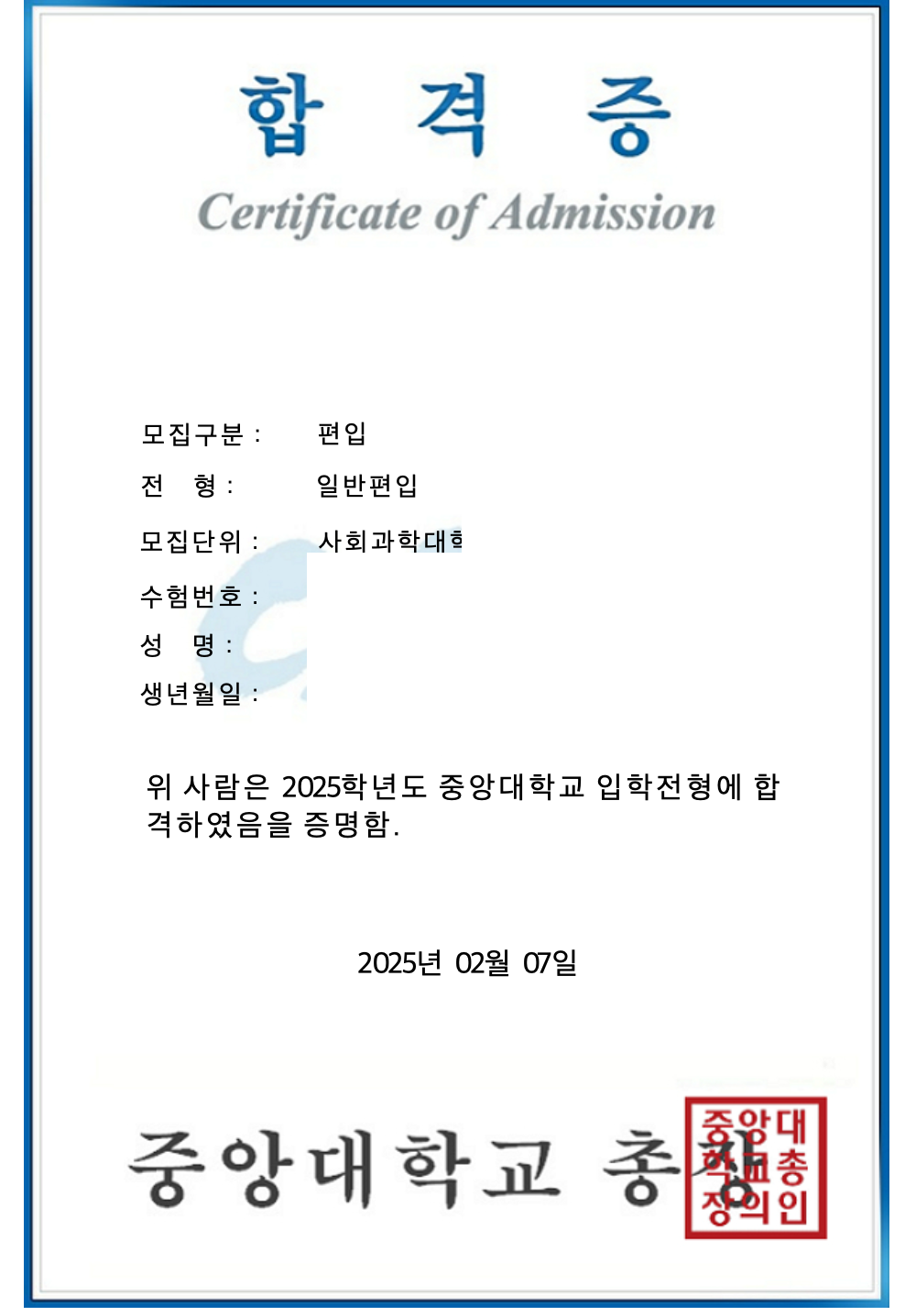 -합격대학/ 한양대 1배수 예비번호, 중앙대 최초합, 외대 최초합, 시립대 추가합, 건대 1차합, 동국대 추가합, 홍대 최초합
