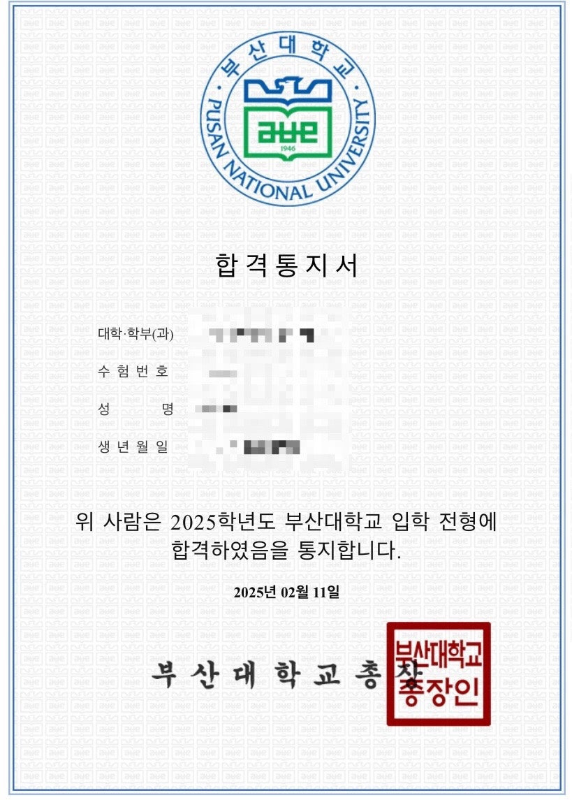 합격대학 : 부산대 [일반] , 연세대 미래 [일반]