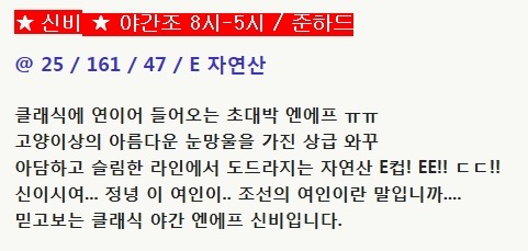 ★ 신비 ★ 연이어 들어오는 초대박 엔에프 ! 상급와꾸 ! 자연산 E컵... 예약말구 뭣이중헌디.. 뭣이.. 작성자강남클래식|작성시간16.09.06|조회수488 목록 댓글 0 글자크기 작게가 글자크기 크게가 다음검색 현재 게시글 추가 기능 열기 북마크 공유하기 신고 센터로 신고 댓글 댓글 0 댓글쓰기 답글쓰기 댓글 리스트