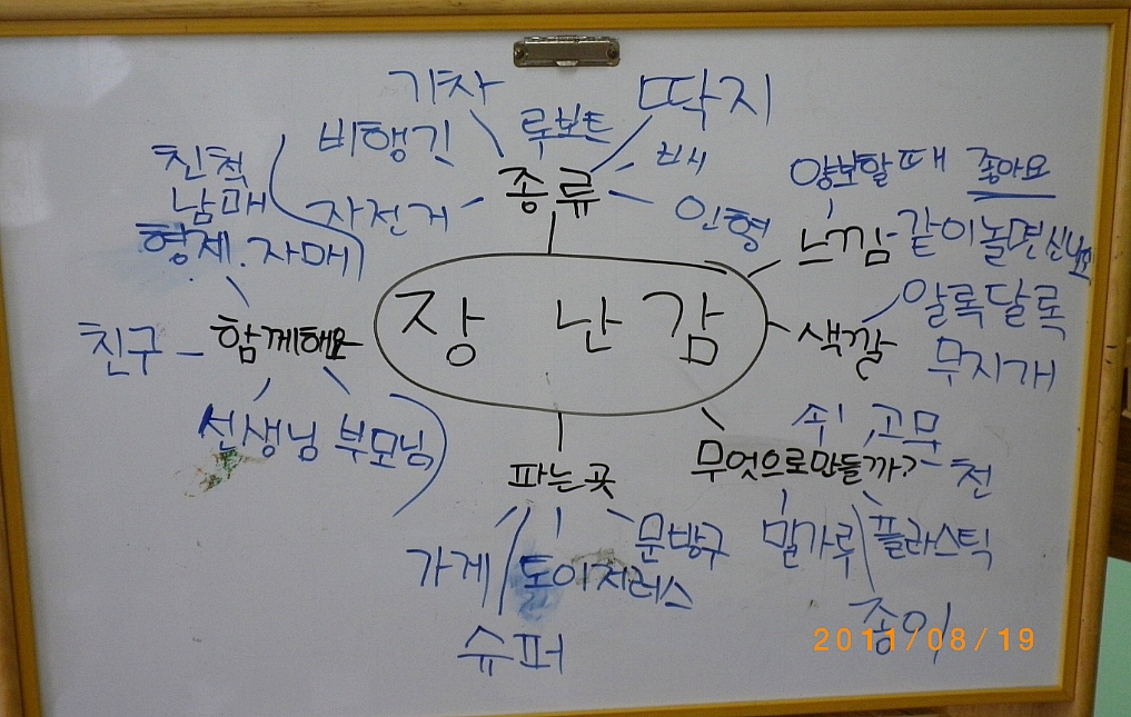 사진을 못 찍었네요ㅠ 브레인 스토밍과정을,,,아이들이 떠오르는 단어를 이야기 하면 제가 칠판에 적는 방식으로 진행하였답니다.브레인 스토밍이 끝난 후 유목화를 할 때 저 혼자 유목화를 하고 있어서,,,,,,,,,,,,,,,,,,,,,,,음,,,,,,,,,,,