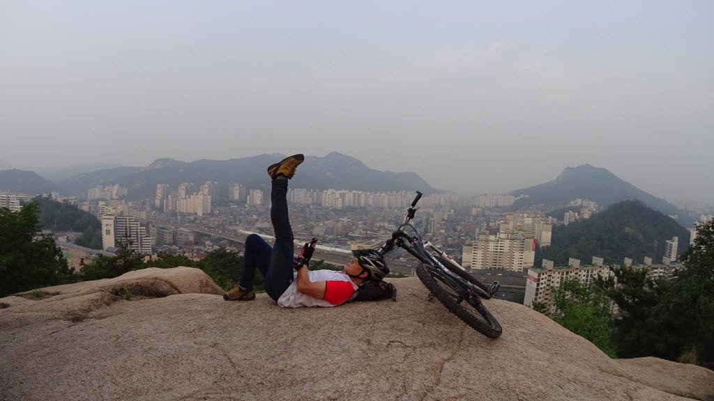 이런날 힘쓰면 땀만 범벅입니다. 그냥 정자바위에 누워 여유롭게 스맛폰 놀이~