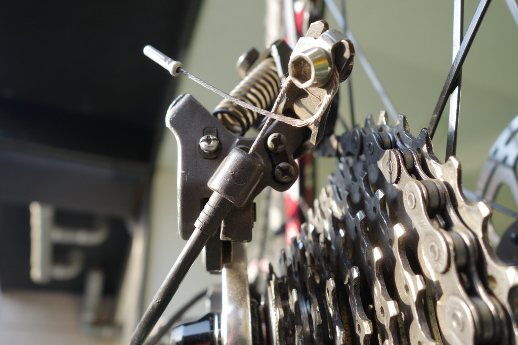 너무 근접할 경우 변속이 뻑뻑해지고 저단(큰 체인링)으로 변속이 어려워지고