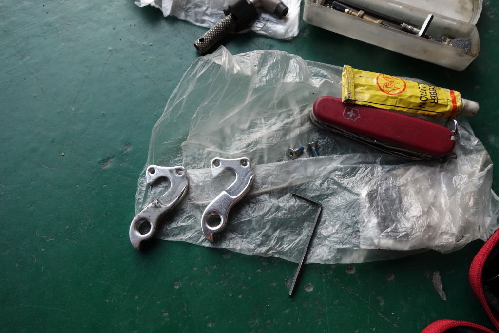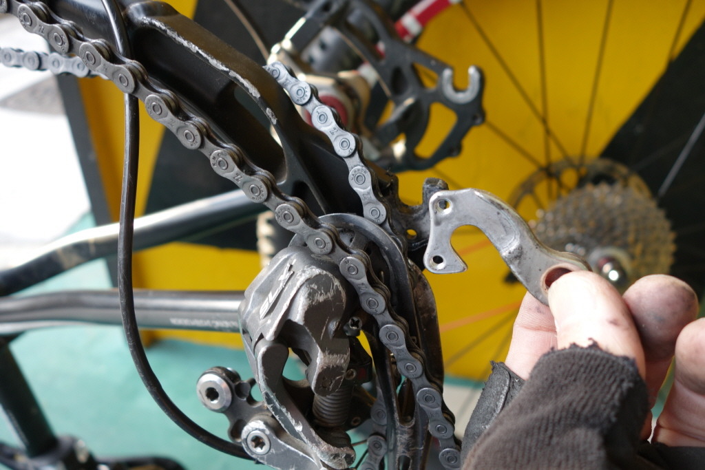 대부분은 약한 재질의 행어가 휘며, 드레일러가 휠 때는 사진 중하 왼쪽 행어 고정