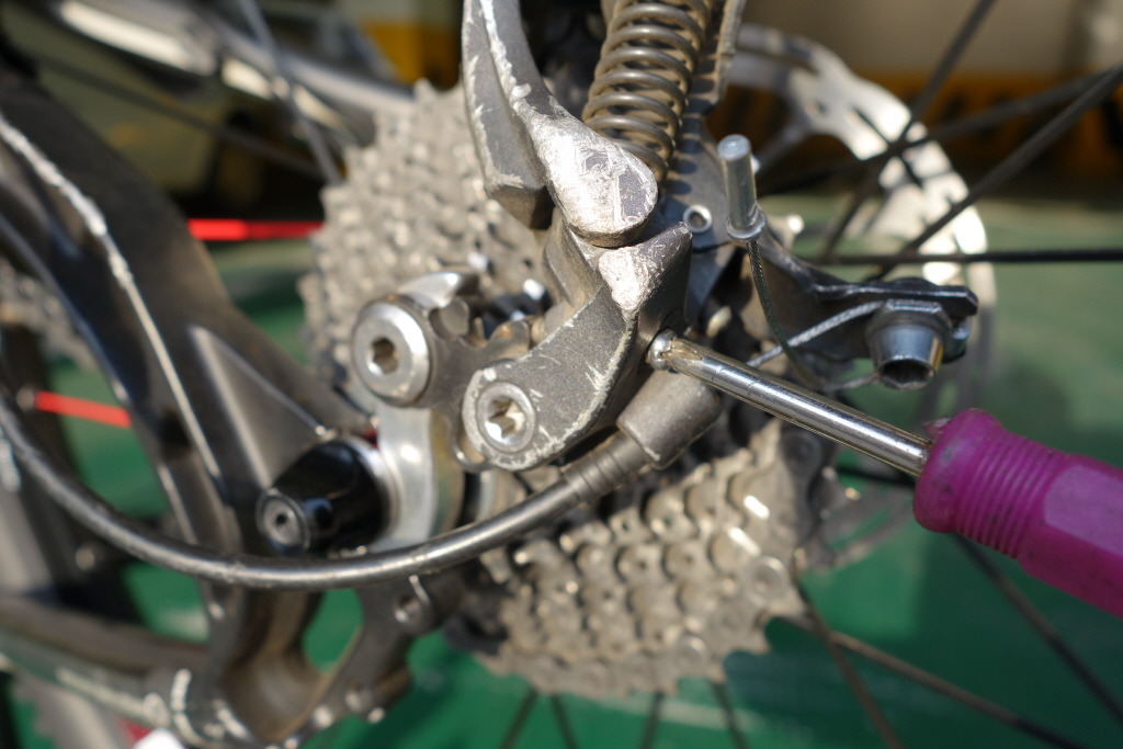 고단에서 변속 풀리가 더 내려와 체인이 프레임 행어쪽에 끼지 못하게 잡아주는 나사