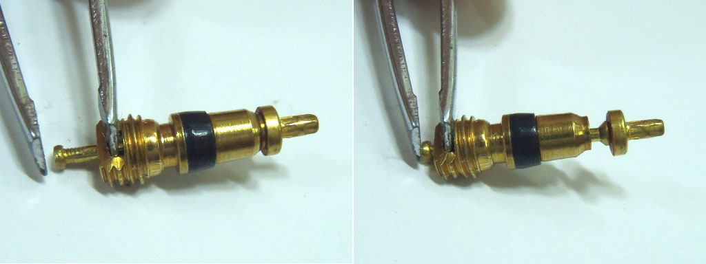 4. 또한 밸브코어를 덜조여, 꼭지 위치가 조금 위에 있을 경우도, 밸브 개방시기가