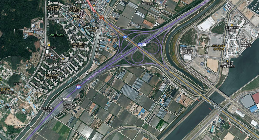 다른 변수가 있을까 해서, 지도를 김포IC쪽으로 옮기며 살피는데