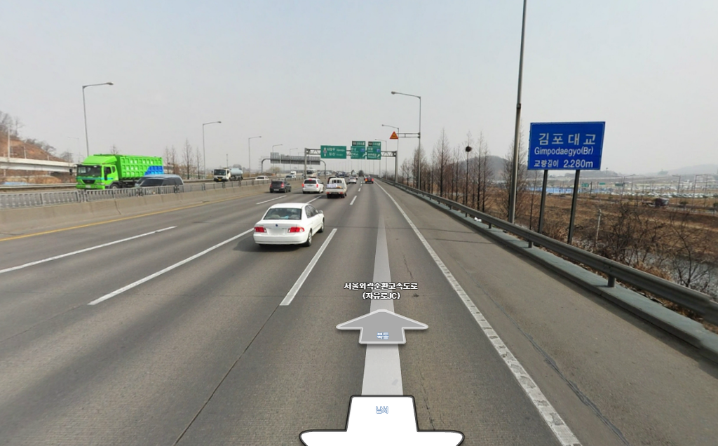 김포쪽 진입로를 올라 본선과 합류하는 구간 로드뷰, 이곳 까지만 해도 이곳이