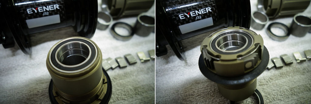 프리휠 바디 양쪽에 실드 베어링 두개씩 4개를 배치 했더군요.
